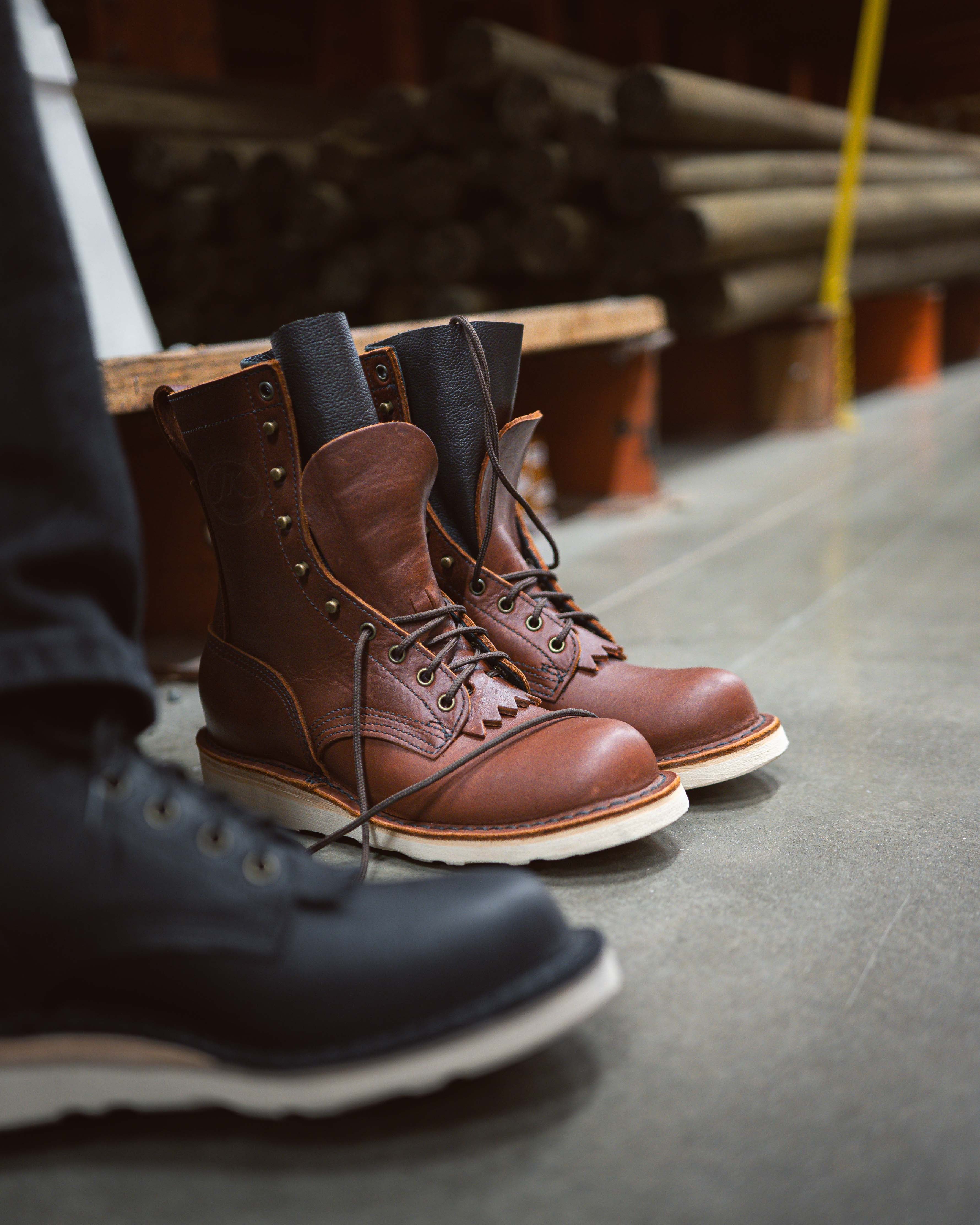 I was hesitant about how an 8-9 oz leather would feel on my foot, but I've been pleasantly surprised. The leather, which is comfortably thick, gets more supple with time, without compromising on ankle support or overall protectiveness. It has nice pull-up quality and takes scuffs gracefully, and the redwood color shows off different undertones under various lighting conditions (photos attached).
