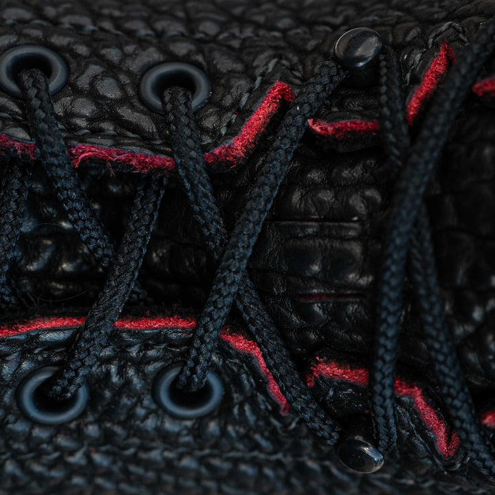 *SOLD OUT JK Boots & Rose Anvil present The Bear Slayer. Made from Blood Core Bison, black outside with a red core that bleeds through with wear. Built with improved arch support, height, and flexibility for everything from everyday wear to mountain hunts.