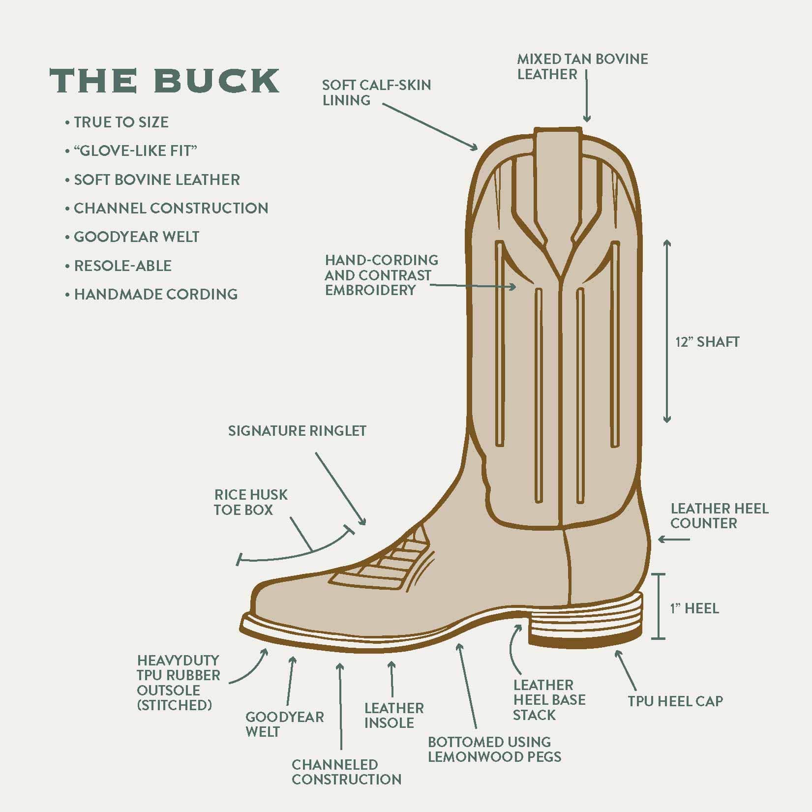 From sunup to sundown, the Buck is here to get the job done - where toughness meets timeless design. Saddle up and step confidently into your workday becuase a well-made boot is the first step towards a job well done.