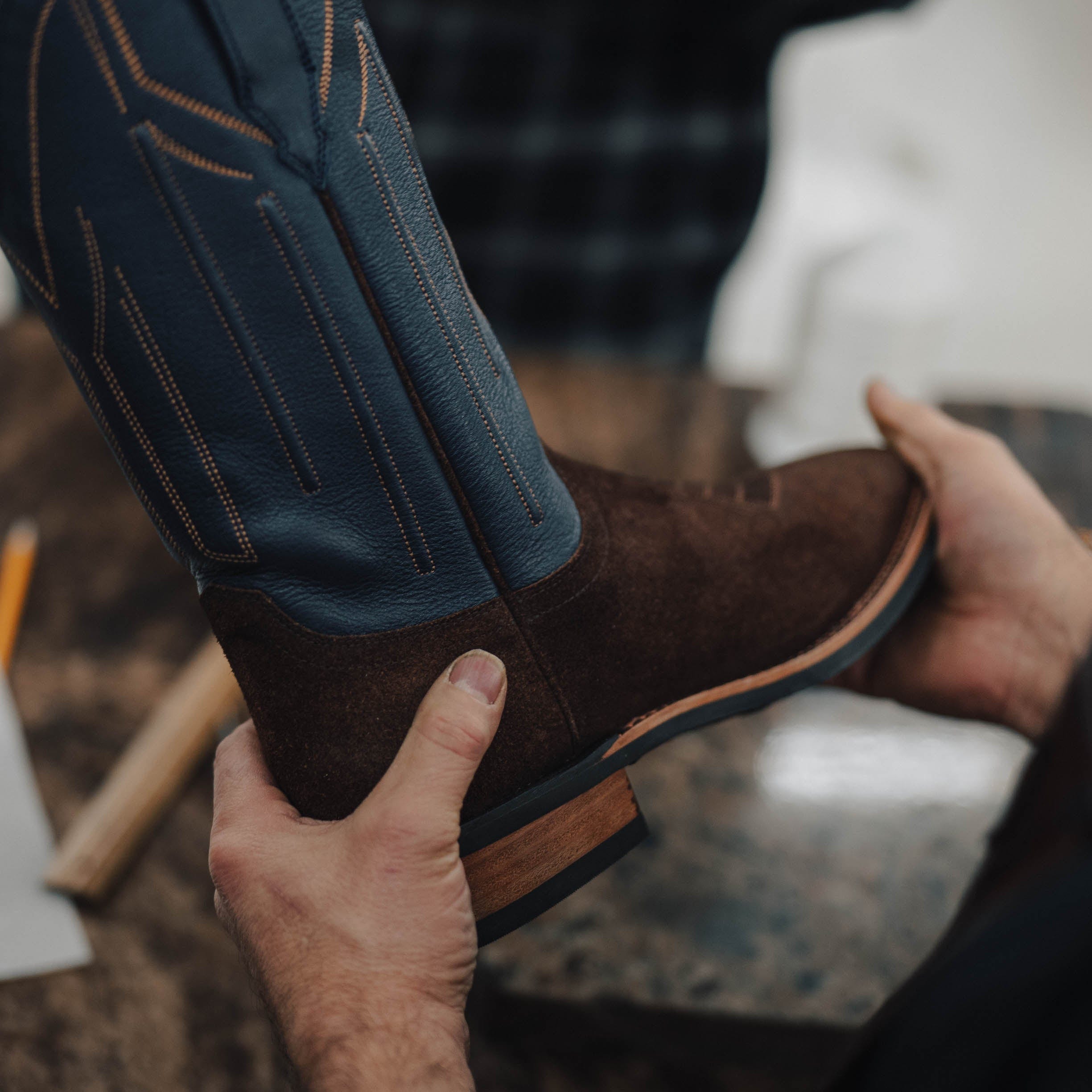 The Buck - Indigo | Chocolate Waxed Suede